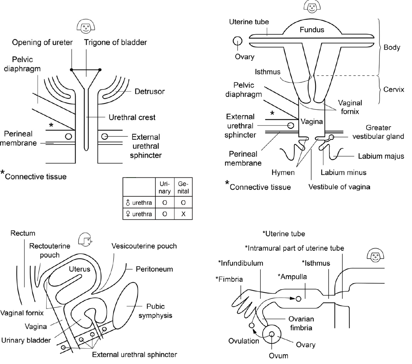 - 여자의 urethra는 남자와 달리 순수 urinary 기능만 갖는다.