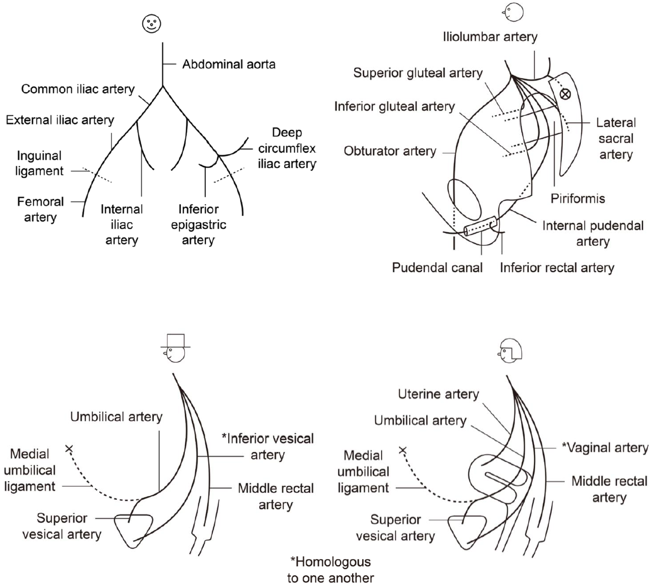 - 남자는 inferior vesical artery가 있고, 여자는 상동인 vaginal artery가 있다.